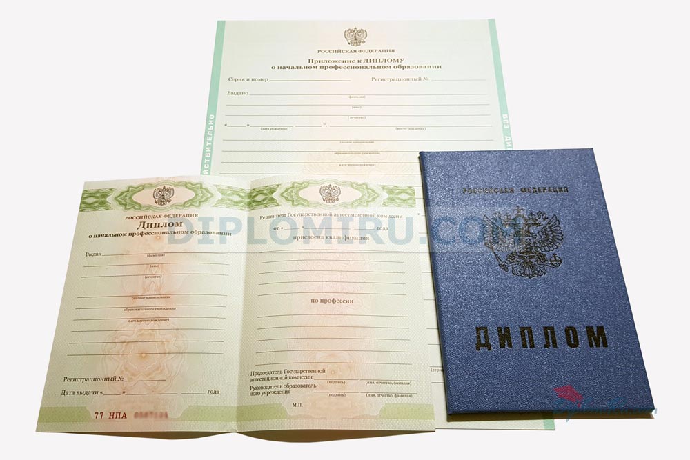 У нас Вы можете купить диплом об окончании училища или лицея в 2011-2013 годах. Диплом о начальном профессиональном образовании заполняется профессионалами как в ПТУ, в соответствии с государственными стандартами и учебной программой по нужной профессии. Заверяется настоящей печатью учебного заведения, подписями.