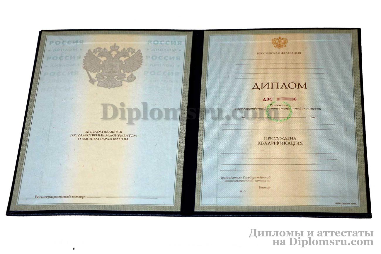 При изготовлении диплома специалиста используется подлинный государственный бланк, заполненный согласно действующим государственным требованиям и установленным стандартам конкретного высшего учебного заведения.